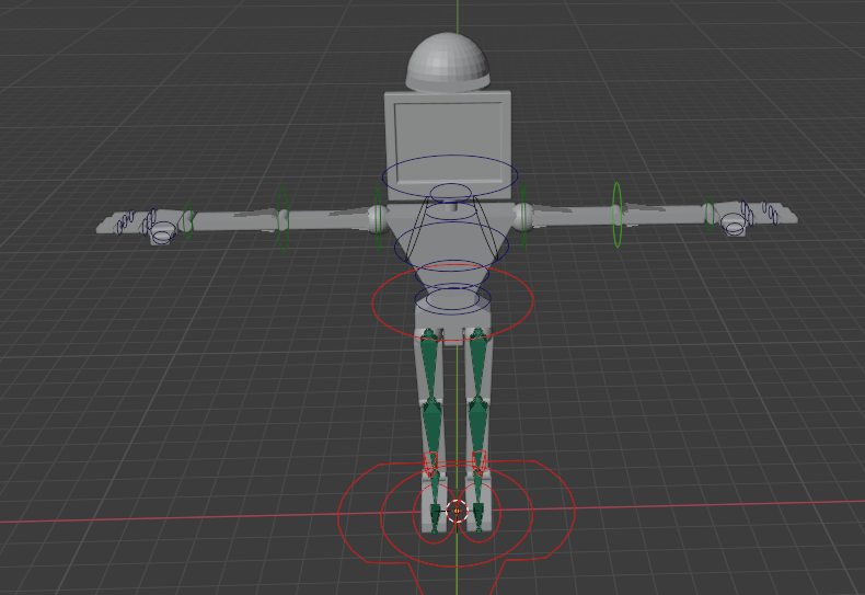 I started with the legs, adding the base and connecting that to the root bone in the pelvis. After that I added controllers starting at the feet and moved my way upwards until I got to the hat.