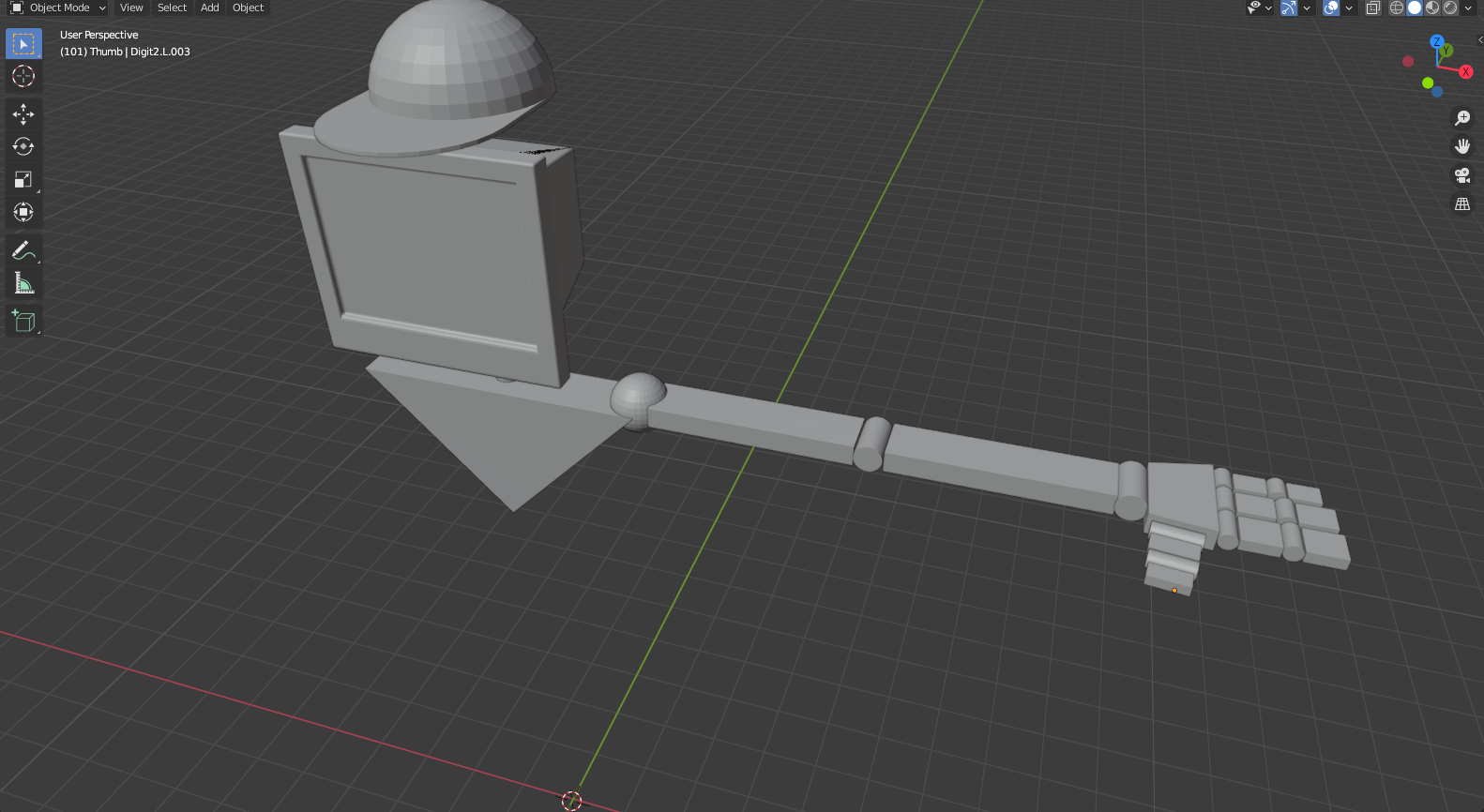 Once I had the Robot all modeled out I finally started to watch LPL’s videos and used his techniques and process on my own model, rather than the Knight. So first things first, I set up the armature skeleton, and bound the rig to the mesh of the model. This was time consuming but not hard.