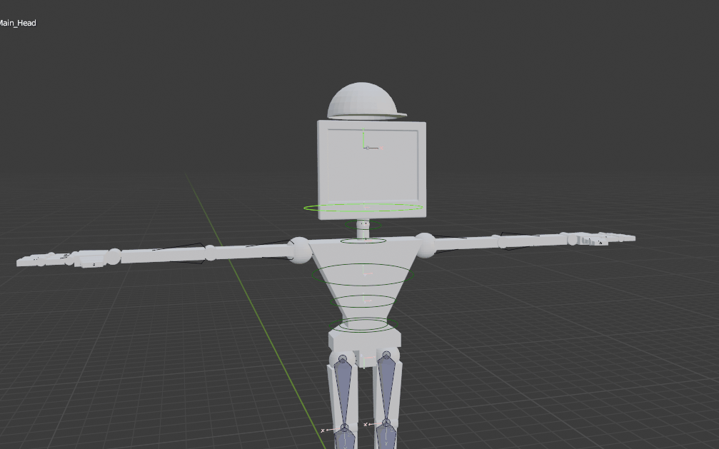 - I weight painted everything to 100% in conjunction to whatever bone and piece of Robot body. This wasn’t a huge problem on most of the body since it was basic shapes but I couldn’t figure out why the body and head would warp in random places.